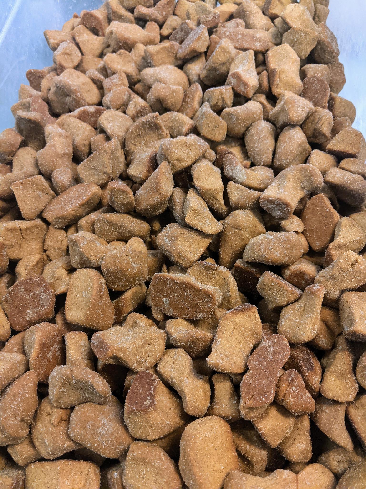 Een zakje échte ouderwetse pepernoten, gemaakt met Nederlandse rogge, honing van de bijen van de Duitse zwager, suiker en anijs.